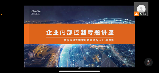 10月29日晚上,经济与管理学院在线上举行“企业内部控制”专题讲座,主讲人为信永中和专项审计和咨询合伙人毕思强先生。经济与管理学院团总支书记高超主持会议,一二年级全体同学参加了此次讲座。