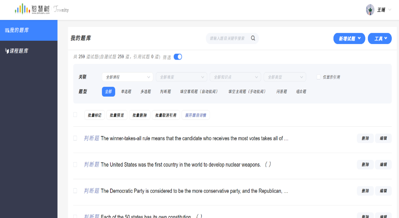 测试题库主要以单选、多选、判断和填空等客观题为主,主要考查学生对基本概念等基础知识的识记和掌握,并根据教学内容持续完善保持题库同步更新: