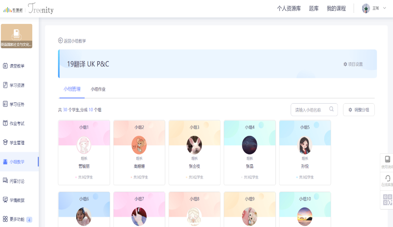 本学期设置了两周小组学习,分别在第9周和第16周进行。首先学生成立学习小组: