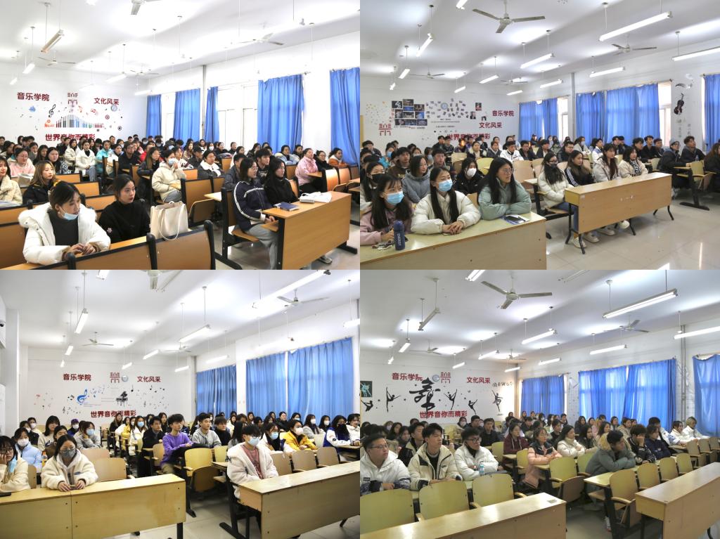 为学习贯彻党的十九届六中全会精神,全面系统学习领会全会精神、丰富内涵和核心要义,牢牢把握正确的方向,11月25日,音乐学院组织全院学生在一号教学楼分年级、分时段举行了“党的十九届六中全会专题学习会”。