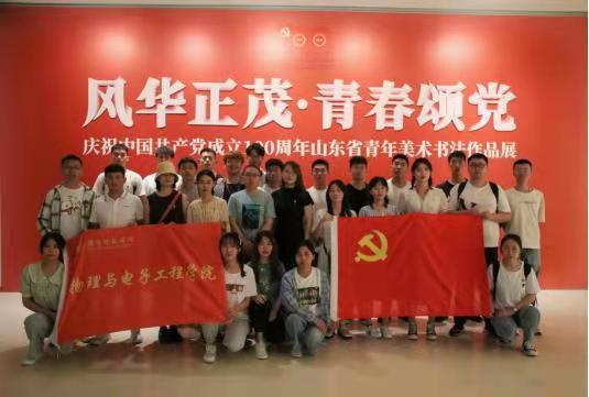 为庆祝中国共产党成立100周年,热情讴歌伟大的党100年来取得的伟大成就。6月5日,物理与电子工程学院学生党团员共计35人在辅导员杨沼佩、吕伟皓的带领下赴山东省美术馆进行参观学习,开展“党团共建忆百年,风华正茂颂青春”的主题活动。