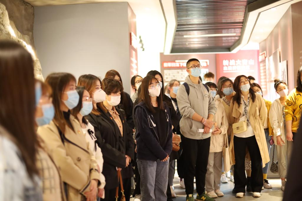学生党支部党员和党员发展对象在认真听解说员讲解
