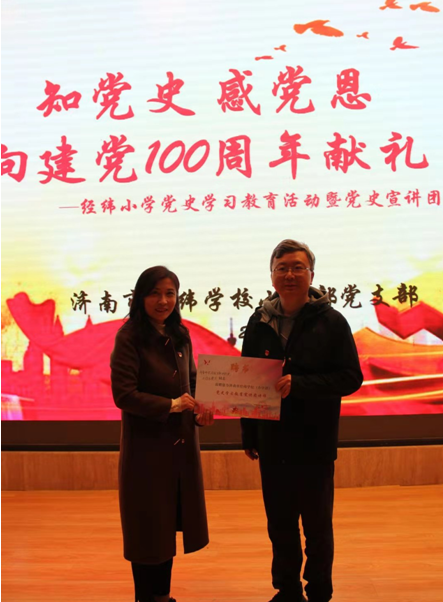 为庆祝中国共产党成立100周年,落实立德树人根本任务,积极服务社会服务基础教育,3月30日,生命科学学院学生党支部联合济南市经纬小学开展了党史教育共建活动,学院党总支副书记陈利虎、辅导员房继德、魏家庄街道办事处党工委副书记程立国、麟祥街社区书记季芹参加了此次仪式。