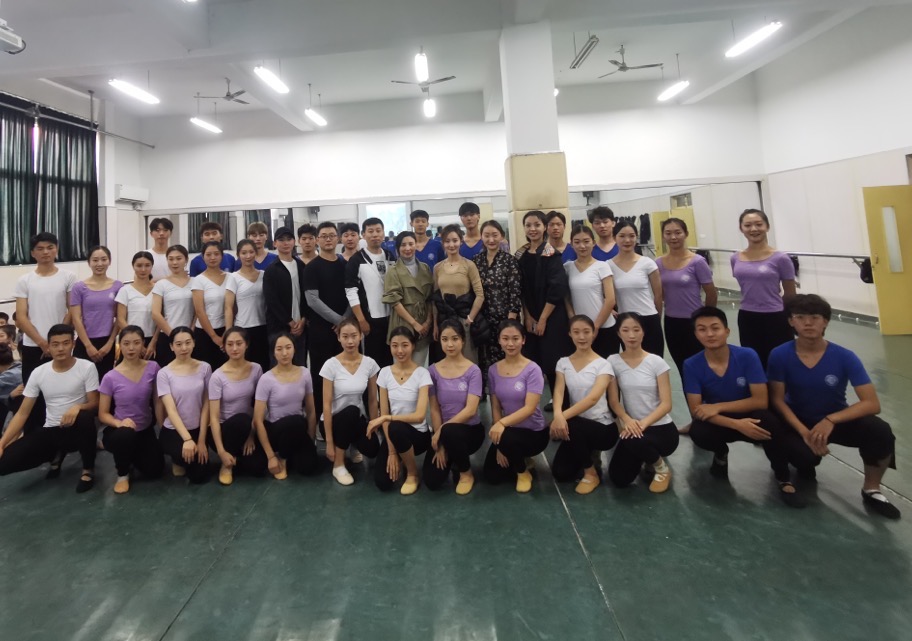 10月8日中午,音乐学院党总支一行来到舞蹈一号练功厅看望慰问我院参加山东省文化和旅游厅大型跨界融合舞剧《济南·济南》演出排练学生。
